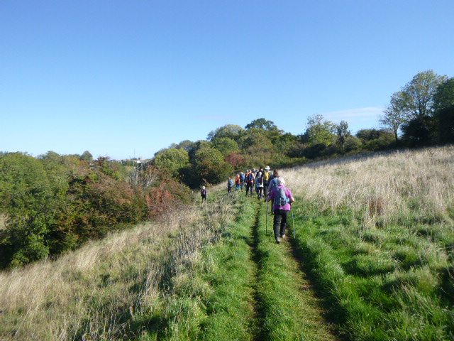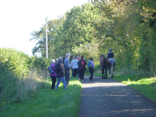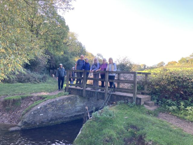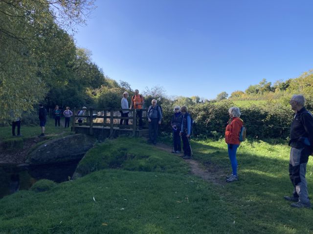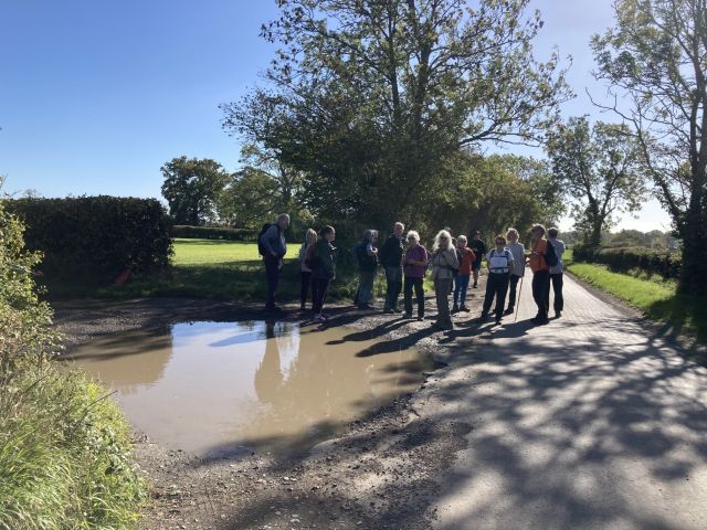 It’s a beautiful day in Luckington for Sally and Ros’ walk. The group move out of the way of the delivery van.