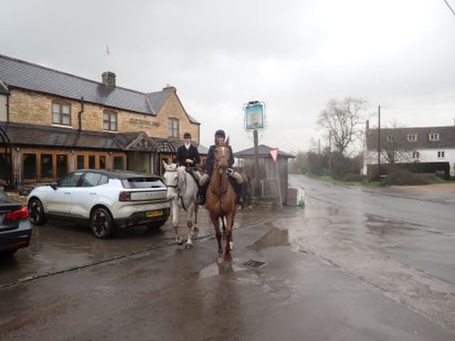 Luckington - Saturday 31 January 2026 Previous Next All Wet paths on Ray's walk from Luckington Badminton With the Duke of Beaufort's crest on the houses In the grounds of the Badminton estate Cute Long rides Mud everywhere Then back to the Old Royal Ship Photos by Keith, captions and uploaded by Sally