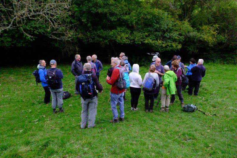 Oakridge walk - Wednesday 13 September 2017 Previous Next Something has caught their eye. Not taking much notice of leader Brian Our route takes us along to Waterlane Following a narrow lane Past a farmyard And into a field on a hillside Which we climb Harvest over and straw waiting to be collected We breast the top of the hill And down through some woods Time for our morning break Can't stop Ramblers from talking Now heading up Battlescombe Valley Looking across to the farm And the pond As we continue along the valley Then a short sharp climb Then the road brings us into Bisley Car been there for a while Take a picture of the butterfly, they said Now in Bisley window shopping Then heading down through the village And up a stony track Too early for this event We pause on our final climb at Lillyhorn as we head back into Oakridge. Photos and captions by Richard, processed and uploaded by Sally
