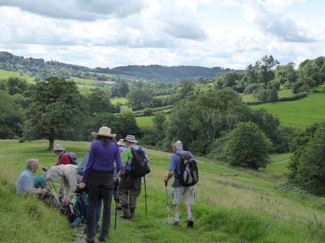 Painswick - Monday 7 August 2023 Previous Next All Summer weather as Penny greets the Monday walkers We set off from Painswick walkers car park Wild marjoram on the common Views of Paradise We climb up to this landmark tree These sheep are curious to see us ... ... having our drink stop Back in Painswick under lovely summer skies Photos and captions by Mike and uploaded by Olivia