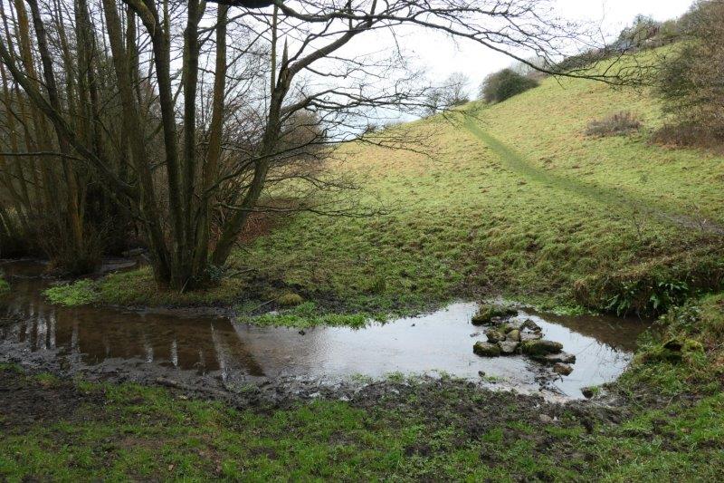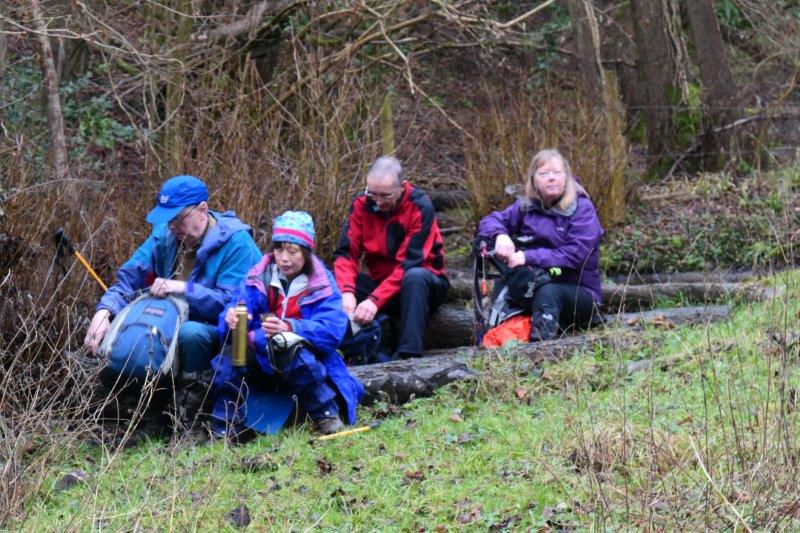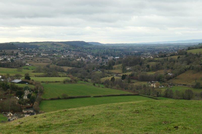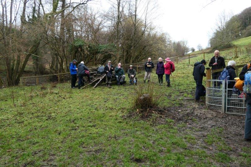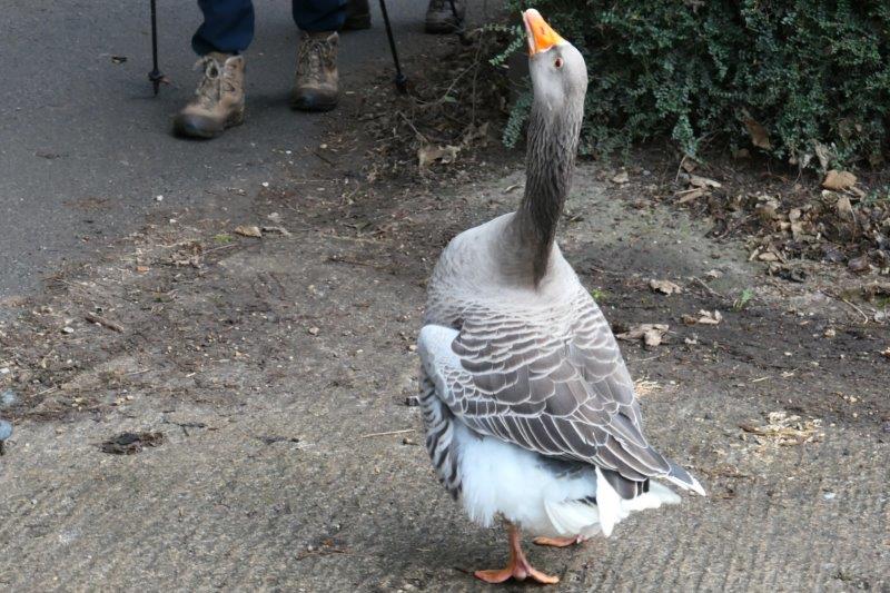 Painswick walk - Saturday 12 January 2019 Previous Next Painswick Walkers car park. Are they looking apprehensive? We head down into the valley then back up to Bulls Cross Down past Trillgate Farm with its dovecote A steep drop into another valley then back up again Watched by a flock of sheep Down to the Dillay Brook Where we stop for coffee The reserved seats Looking back up to Snows Farm And down the valley to Slad In deference to bearded ladies everywhere, old persons' beard Over a stile into the woods Following the valley round to reach the Laurie Lee Nature Reserve We walk through the reserve To come out to Swifts Hill where we have views down the Severn Valley And over to Slad A steep descent Nearing the bottom Our route takes us past this pond Group photo More water at Steanbridge With its cafe - as usual closed On uphill where we are accosted by a guard goose Determined to stop us Well I won't let him past! Back uphill and over the top To look down on Painswick Back to the bottom where we start our last long climb Some snowdrops to help us on our way And a spring by the side of the road As we head back through the town Photos and captions by Richard, uploaded by Sally