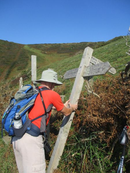 Polperro - Day 5 - Polperro to West Coombe Previous Next All We walk from the holiday park to Polperro, leaving it behind as we head west We walk along the coast path towards West Coombe A very short distance out of Polperro A tunnel It's a beautiful day but much windier and the sea is choppy The path goes down And the path goes up Stunning views We continue There are many steps going up And many steps going down Coffee break Andrew fixes his final signpost - this one was pointing the wrong way round! At East Coombe we come across some ponies We decide to join the ponies and have a little rest A little green oasis We head to the beach for a paddle And lunch At Lantivet Bay we have our lunch and a little paddle Sally has found some tangled fishing net which she carries 4 miles into Polperro Andrew lets his hair down And the children play!! Janet shows off her balancing skills We head inland passing some of the few cows that must be providing the clotted cream St. Ildierna's church at Lansallos The farmer at Landaviddy has a brand new tractor Then back into Polperro where the energetic walk back and others get their entertainment on the bus! Photos and captions by Sally and Sue, uploaded by Sally