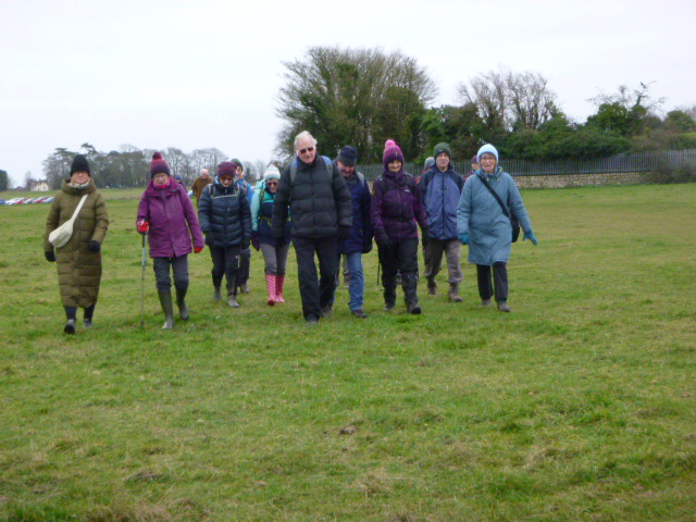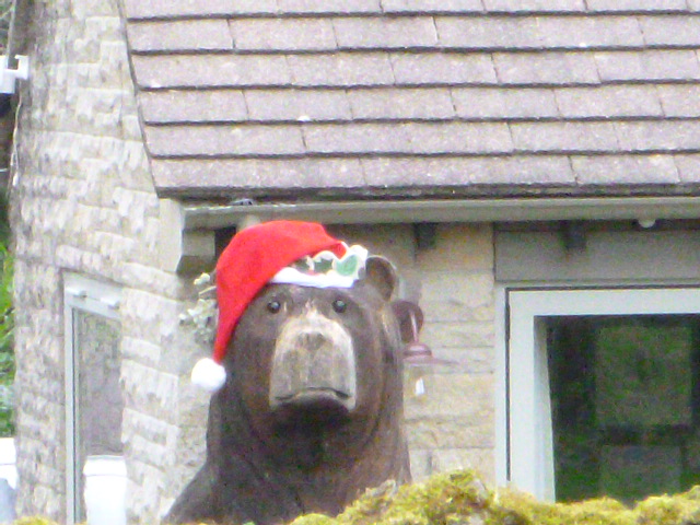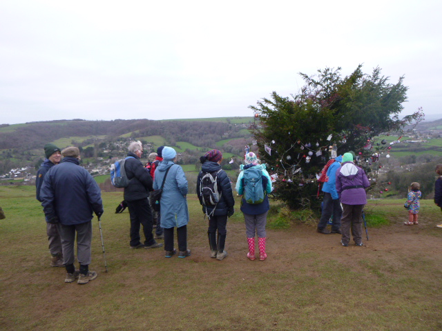 Rodborough Common - Monday 29 December 2025 Previous Next All Ann leads the walk from the reservoir on Minchinhampton Common A festive bear watches us from Moor Court We stop at the Dog Tree Coffee stop by Rodborough Fort Where some get a seat before heading back to the reservoir Photos and captions by Sally, uploaded by Olivia