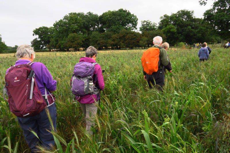 Rodmarton walk - Saturday 3 September 2016 Previous Next We meet with Rodmarton Manor behind us Time to catch up on summer holidays before we go Tim is now ready And we make our way over a recently ploughed field Downhill And through a hedgerow Onto a lane Flowers on the verge Also used as a rubbish tip Now what could this be? A payment machine from Kemble station Continuing across fields A very mixed crop in this one Pausing as we reach a grassy track Back marker and helper Coffee coincides with the start of the rain On come waterproofs and up go umbrellas Tim striding out uphill More land taken up with wild flowers Ready for a fry-up Approaching Rodmarton. Tim waits Then it's into the village and back to the cars Photos and captions by Richard, processed and uploaded by Sally