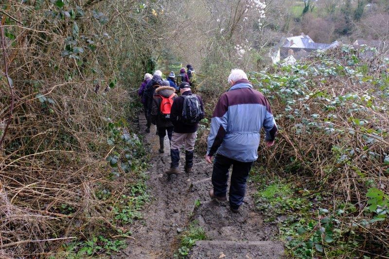 Selsley walk - Saturday 4 January 2020 Previous Next All They all look cold - it's cold. So we set off at a brisk pace Past a happy camper on the common although he seems to be having a lie in And along the driveway of the livery yard Cresting the top of the hill Then making our way round the side of the valley Downhill Tim leads us over an old stone stile Into the vineyard Then down across a driveway into Woodchester Park Down a muddy stepped path And up the other side Towards Windsoredge Reaching the top we pause to take in the view And after coffee head downhill To Dunkirk Mill and the millstream And on to the cycle track Where Tim reminds us of the area's industrial past As we walk along the shared use path (walkers, cyclists and horse riders) With its new surface Complicated graffiti The Nailsworth Stream flows on down Our second coffee stop at the site of the old Woodchester station Then we head uphill through Woodchester Past large old houses Until Bospin Lane takes us to a woodlined path All but the back marker safely over the stile And we continue uphill Following a field path along the edge of Dark Wood Left behind by a horse At the top of the hill Waiting to greet us Signs of life now in the caravan While back at the cars model airplane enthusiasts are getting ready to fly As we take our leave of Tim and thank him for the walk Photos and captions by Richard, uploaded by Sally