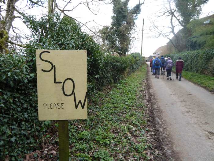 Sherston - Monday 7 March 2022 Previous Next All Jacqui briefs us Off we go, passing the old church It might be sunny later Winter silhouettes Passing a pond Quiet road Some stately pines Pinkney Court River Avon (Sherston Branch) An attractive location for the coffee stop No danger of this group speeding Jacqui approaches Pinkney Park The White Walls Way, named after the site of a Roman town known as Whitewalls The sun makes a welcome appearance We are spotted! By our woolly friends Yes, we have to return to Sherston Photos and captions by Mike, processed by Sally and uploaded by Olivia