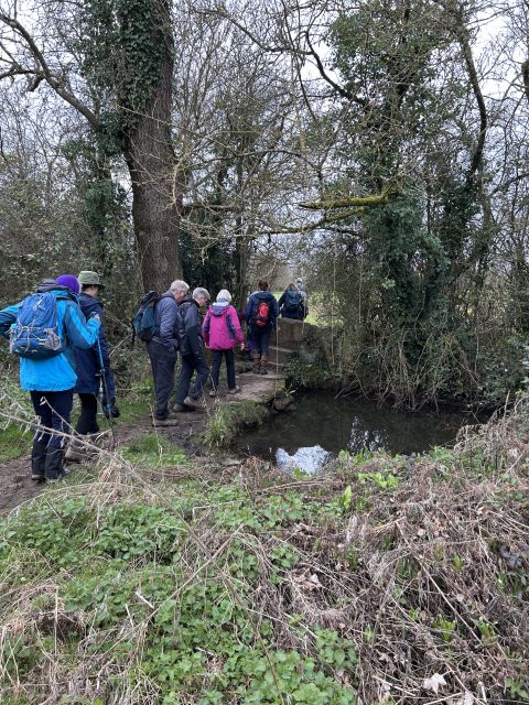 South Cerney - Monday 16 March 2026 Previous Next All Ros describes Janet’s walk which she is leading today The information board says that the ornate bridge is to replicate the bullrushes White violas all along the side of the path .A very old stile that most of us managed to step around. We pause for the others to catch up. It’s very slippery over the tree roots Ann Edwards college which Ros tells us was never a college!! South Cerney church for our coffee stop but we’re all too spread out for a photo The River Churn is high This must have been a magnificent tree Sheelagh tells me that these are Coltsfoot flowers but not fully open yet Photos and captions by Loren, uploaded by Sally