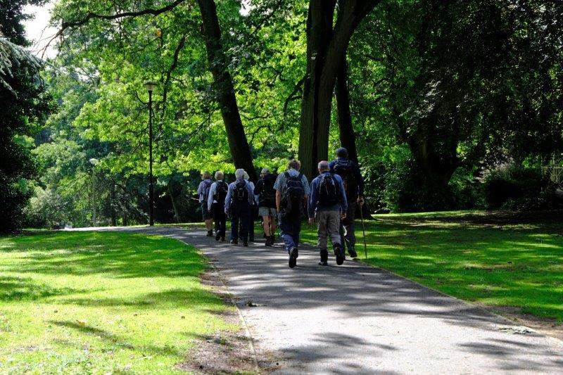 Stroud circular walk - Saturday 22 July 2017 Previous Next Flower display in Stratford Park As we head downhill Over the stream Hawkwood College nestling in the trees View over to Whiteshill A farm down in the valley We always stop here Before continuing downhill Past some strange sheep Deep into the valley Over a stile Past the badger posts Rustic gate Large house down in the valley Climbing up Swifts Hill Then contouring round We emerge from the nature reserve Curious Tamworths A breather below Fennells Farm Giffords Circus is on the road, so cattle are in their field An Edward VII letter box Walking towards Round Elm Views to the River Severn And Rodborough A good spot for lunch, apart from the flies! Setting off again Down through a field of ragwort Looking over to Bownham On the canal path Jill and Sue leave us We cross over Jubilee Bridge Then over the railway A pause when we reach Butterow Lane And our next stop is the ice cream factory Interesting to watch the efforts of owners trying to coax a large dog into a car Then we have more views across Doverow and the Severn from Rodborough Common Now heading along the canal Through Stroud The Ecotricity building in the background And, as the rain sets in, we cross the new bridge and head back to the start Photos by Richard, captions by Richard and Sally, processed and uploaded by Sally