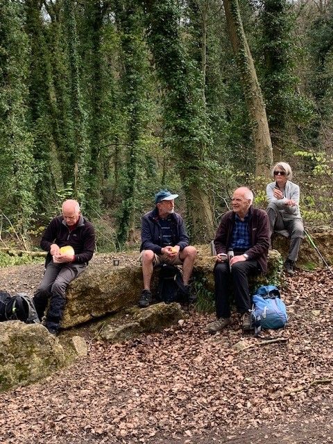 Stroud - Wednesday 26 April 2023 Previous Next All Loren and I admired the water feature in Ruscombe Starting to climb over an old stile that needs TLC Our leader, Norman, patiently waited while we ascended the Throat Each at our own pace Into Standish woods Along the Cotswold Way trail Warm enough today for the Wood Anenmones to open a bit And Voilets, which aren't blue And Bluebells which are Our leaders provided us with seating For a rest and a snack The dairy cows at Far Westrip have brushes to use This cow was enjoying this one Down to Ebley And back along the canal Photos by Norman and Helen, plus the first one by Loren, captions and uploaded by Olivia