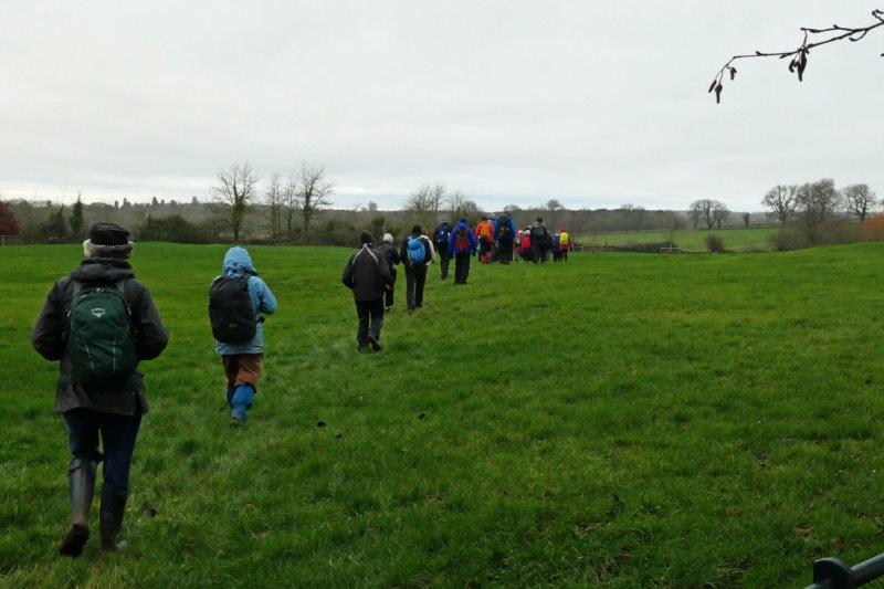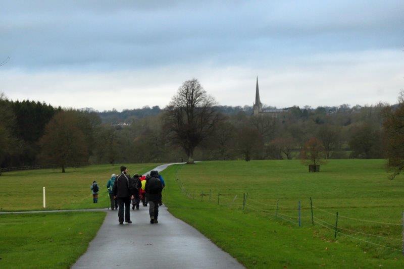 Tetbury walk - Saturday 8 December 2018 Previous Next Leaving the car park we head towards the Malmesbury road Looking back at the church Then taking to the fields Round the edge of a ploughed field Sally going the wrong way Round another field Then a brief pause Past some old ruins And a large house Another field this time with some lush grass An old farmhouse Then the flour mill A short sharp climb Now on the Estcourt Estate A big crowd of doves Olivia gathers her team And, you've guessed it, we have a spot of tree hugging Before we stop for coffee Off again Passing the main house Catching sight of Tetbury Church spire in the distance Across the Tetbury Avon Our own horse whisperer gets to work Tetbury Church in front of us We head towards the town Looking through one of the viaduct arches Then following the footpath through another A pause in the sun as we enter the town Past the market place And down the Chippings Back to the car park Photos and captions by Richard, uploaded by Mike