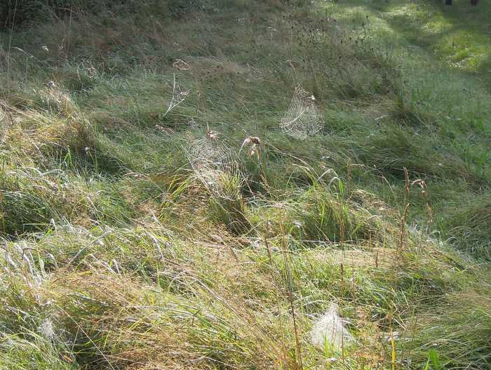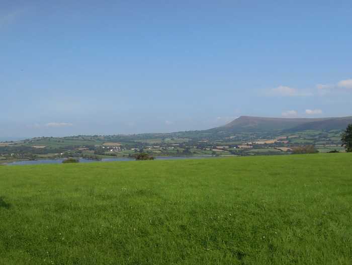 Thursday 15 September 2016 - Shorter walk near Llangorse Lake Previous Next On arrival at Llangorse Lake we get a good view of the Beacons The ducks are only interested in one thing The lake reveals itself sparingly Wonder if Sally took a better picture? We head to the reconstruction of a crannog - a mini man made island - see link below to read more The best view Clear water We set off across the common A beautiful morning The lake is surrounded by reeds and the path is well away from the edge in the interests of the wildlife Mynydd Llangorse, over 500m, is nearby The dew shows up on the spider webs This one is striking We regroup And set off along the board walk We are not expecting rain - perhaps the cattle know something? Another view of lake and mountain We head slightly uphill To Llangasty church We go though the gate And see several gravestones to the Raikes family members A Victorian painted interior On the hillside fern is being harvested. It will be compressed and used for biomass heating Heading along the road we read about Treberfydd walled garden And yes, it is open A very pleasant place to be On this sunny morning Perchance to dream After a few hundred yards we reach the village hall where we picnic and look at more views The only hill of the day, which leads to ... ... a great view of Fan y Big and Pen y Fan Turning round we can still see Llangorse lake Our return journey takes us along a quiet track The wild sloes look good this year We reach Llanfihangel Tal-y-llyn Common A damp place full of reeds And we are soon back on Llangorse Common, where these horses live They look well And are used to tourists A nice cup of tea and a laugh at the end. Read more about Llangorse Lake and the Crannog Photos, captions, processing and uploading by Mike