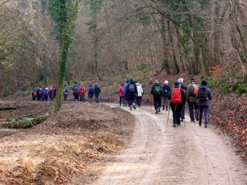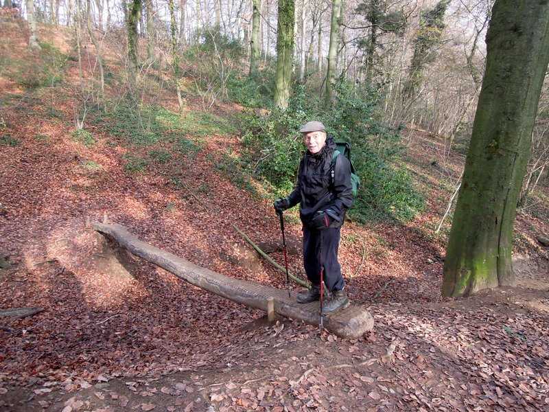 Woodchester Park leisurely walk - Monday 5 December 2016 Previous Next Jacqui leads off a party of 31 walkers, including three guests from near Manchester Is it Spring already? We head down the valley A lone sheep, where are her friends? A little Autumn colour left We are following the higher route behind the mansion Not sure why these are built? We head further down Past one of the lakes Plenty more sheep here We turn right along one of the dams High water - can you complete the message? A very attractive place To have a coffee stop Possibly the summer cottage of the 18th century Ducie family? We head back Across a meadow All heads down in a damp area Along the other side of the lake Brian remembers working on the roof of the old boathouse in the 1990's when the National Trust took over the Park Come on Brian, we're getting behind No chance of getting lost, as we head up Past the unfinished Mansion, closed for the winter What's this? Old fashioned telegraph posts A new gateway? Actually made of wood with a plaster skim. It's a film set temporarily, see info below The National Trust is after younger members Fancy balancing on this? Or bouncing on this? Don't do it Bernard! That's better Arriving back at the car park, we work out from the information board that we must have done parts of the orange and red routes Photos, captions, processing and uploading by Mike To read more about The Crown, reportedly the most expensive film ever to be made at £100m, being filmed in the park, click here Actually filming pictures here