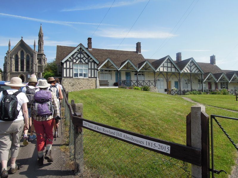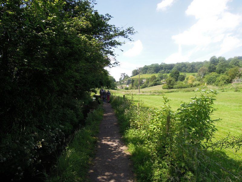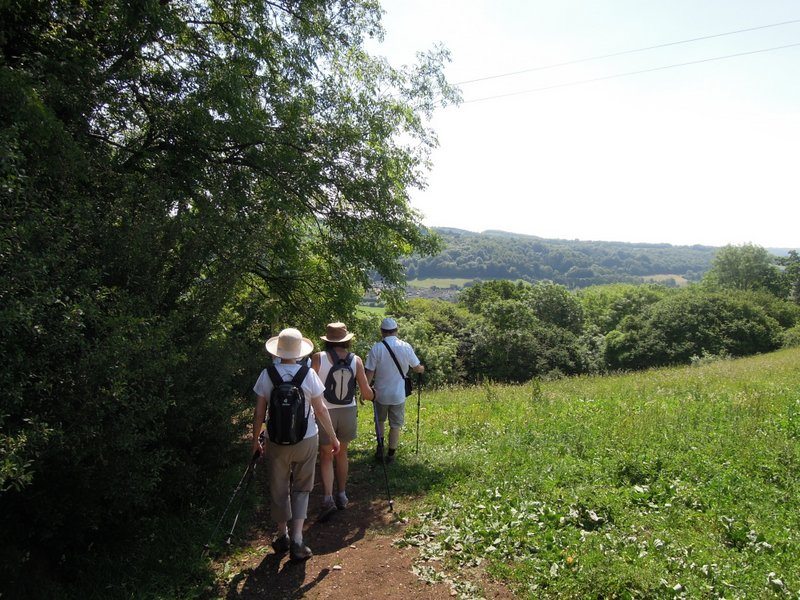 Wotton-under-Edge leisurely walk - Monday 19 June 2017 Previous Next A sunny hot day We meet at the Royal Oak And Chris leads us off through the town Up past some almshouses And the former Tabernacle, now an auction house Wonder whether to bid for this? A sign to their carpark, which we sometimes use, but not on sale days We head uphill in the cool To Conygre Wood Eventually up the lane And emerging onto Coombe Hill We contour around Over the stile To have a good shady break in Coombe And a chance to have a chat Amongst our friendly members and some visitors from Devon We are ready To descend towards Holywell Passing some roses Some more welcome shade In the valley We are now on the Cotswold Way Following the Holywell brook An interesting area Behind us an inviting looking hill, but there are no public paths Back into Wotton near Potters Pond Sounds painful It IS steep Up to the parish church A peaceful spot Passing some more almshouses And under attractive hanging baskets We arrive back for lunch Photos, captions, processing and uploading by Mike