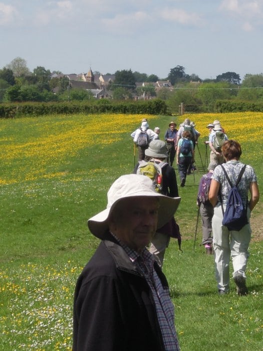 Wotton-under-Edge leisurely walk - Monday 20 May 2019 Previous Next A lovely May morning as 22 assemble for our walk We set off towards Kingswood Downhill through the buttercups Chatting as we wait at stiles Down again Another stile Goff looks round Is he one of us? A blooming tree Erosion around the tree roots "Buttercups our gold!" A noble tree We have come from Wotton Colin leads us back "How many more in our field?" We spot some walkers in the distance going up where we came down. Wotton Parish Church looks all on its own from this point - but all the nearby houses are hidden These two seem pleased to see the back of us Like cotton wool - perhaps a willow? Wow, what a sight as we return to the start Photos, captions and uploading by Mike