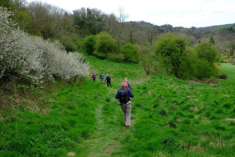 Wysis Way 1 - Saturday 15 April 2017 Previous Next Kemble station and our journey along the Wysis Way begins Heading across fields - plenty of new lambs Stepping out Towards the beginning of the River Thames A train passes by on the nearby railway line And we pause at the source of the Thames A brand new gate Installed by the Cotswold Wardens following pressure by Ann and Bernard But the farmer still uses the canal as a rubbish dump On past Skew Bridge And the round house To Kings Reach And the Tunnel House Portal Looking back up Kings Reach Then a pause for coffee Now woodland paths With bluebells Before a field brings us to the A419 Carrying on we reach the Sapperton Road But keep to the side of the field - it's safer Eventually we have to take to the road - but Ray, being expendable, is pushed to the front and given a yellow jacket The garden of the Bell - looks like one of the Cirencester Hares Into Sapperton Church graveyard With its ancient yew trees We leave Sapperton Heading downhill And reaching the canal at the Daneway Portal Strange fungus growing by the wayside Passing the refurbished Daneway We cross the Canal Marsh Marigolds Continuing along the towpath The river on the other side Under Whitehall Bridge Out onto the road at Bakers Mill Then up through the woods Nearing Oakridge A grassy track takes us To Bournes Green More wayside flowers Following a track across fields The spire of Bisley Church getting closer Up the steps to the Church and back to the cars Wysis Way 2 > Photos and captions by Richard, processed and uploaded by Sally